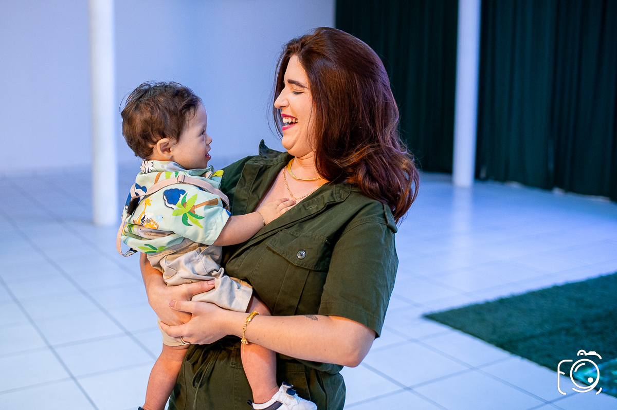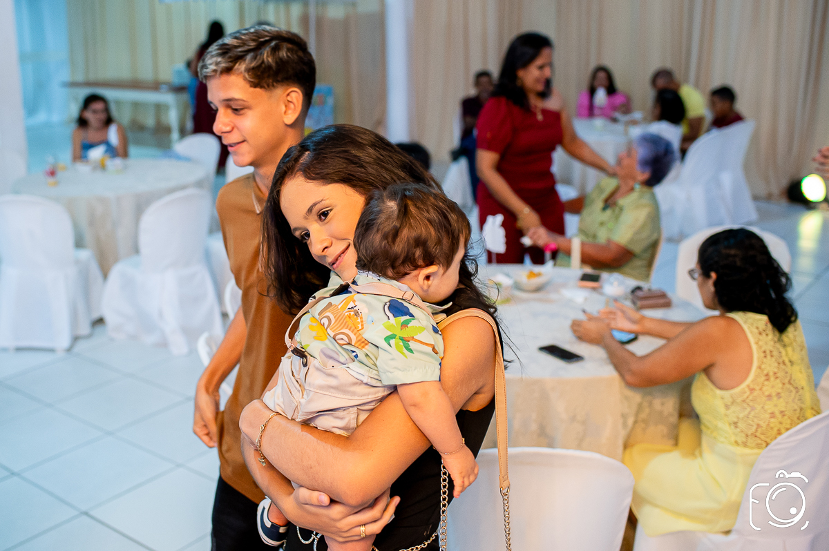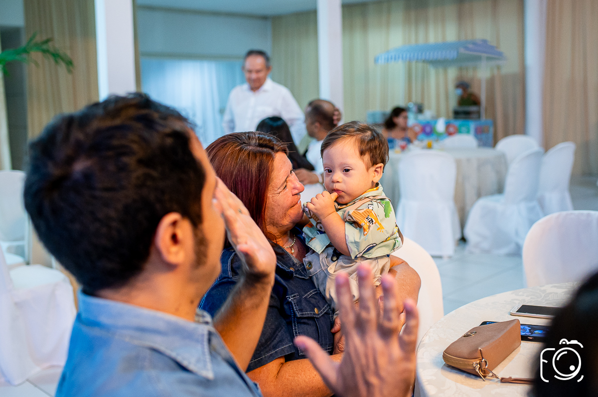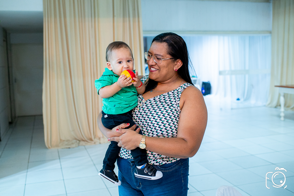 Então vamos para mais essa história, festa animadíssima, com muitos convidados, muita alegria e não faltou emoção, carinho, apertos e beijocas no pequeno.