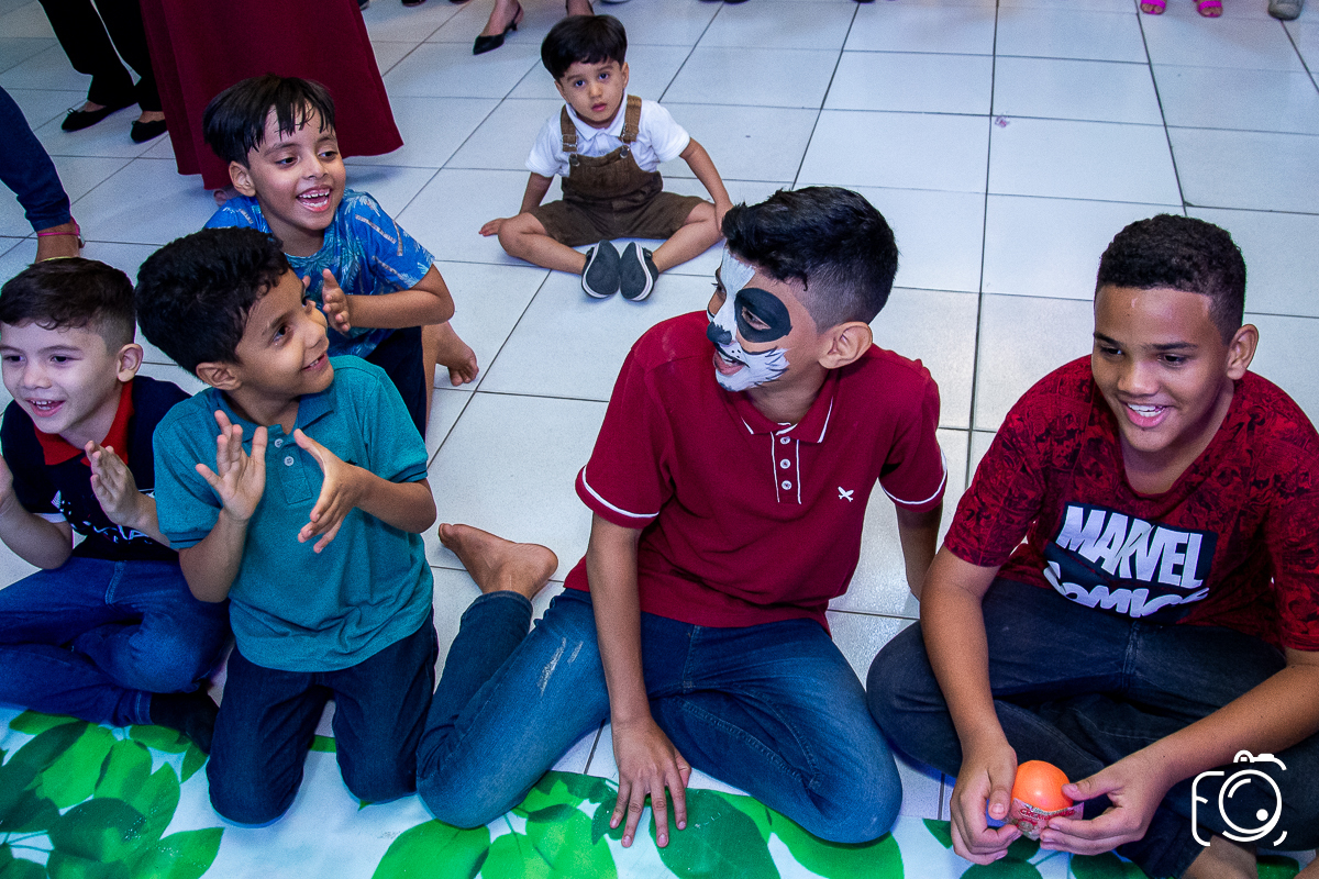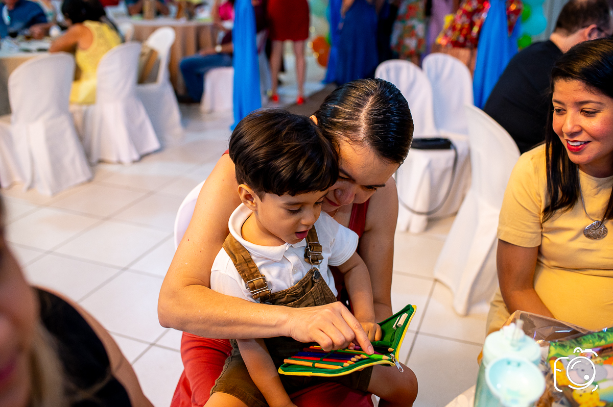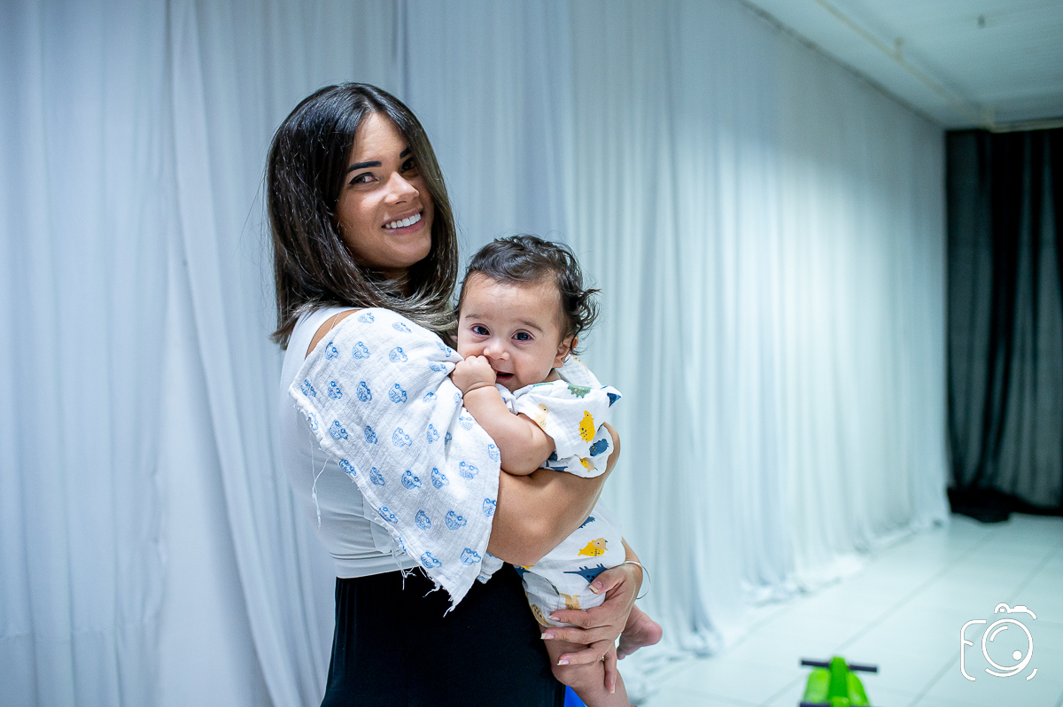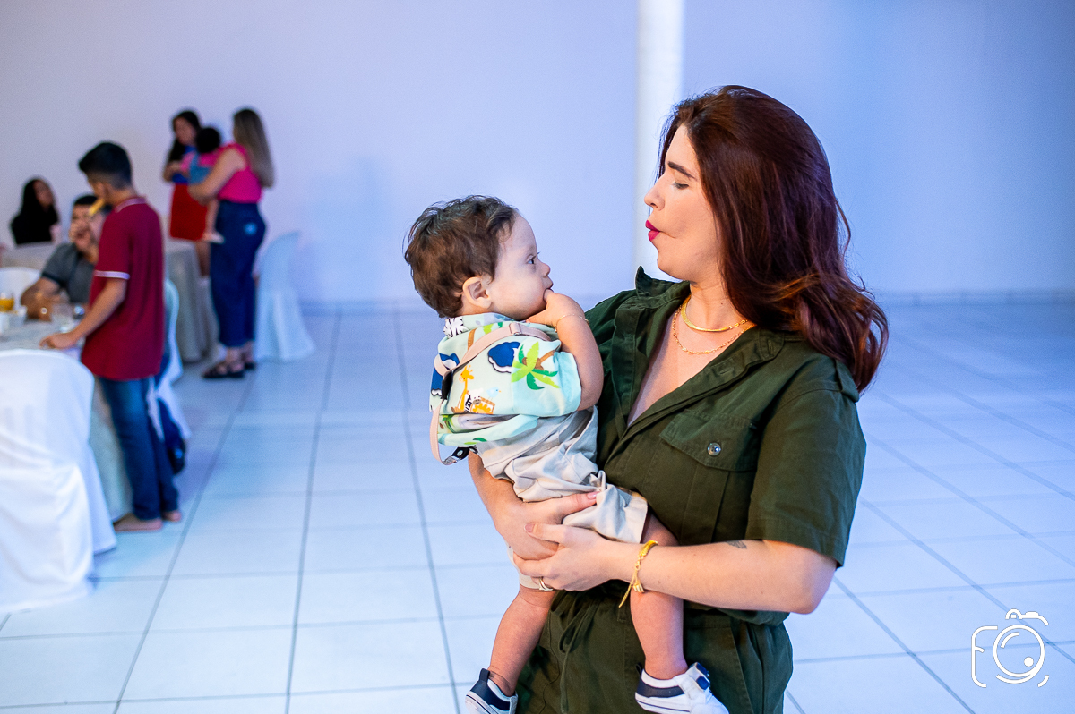 Então vamos para mais essa história, festa animadíssima, com muitos convidados, muita alegria e não faltou emoção, carinho, apertos e beijocas no pequeno.