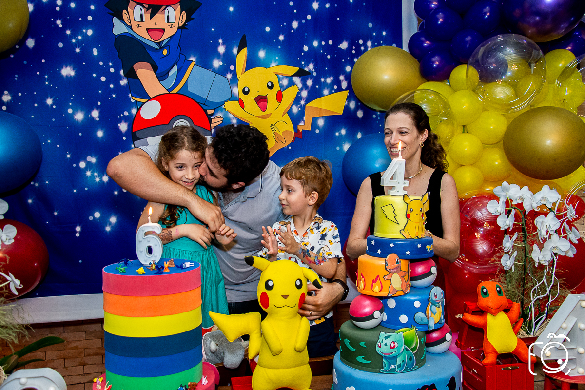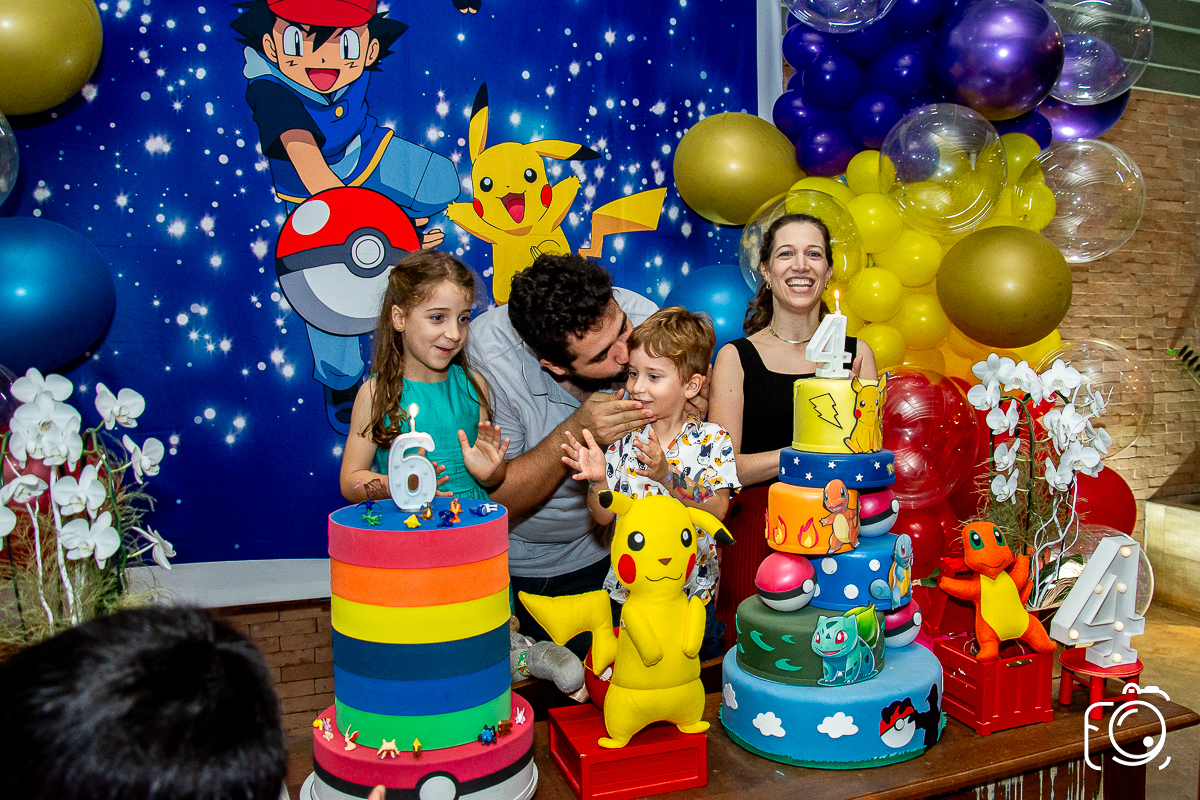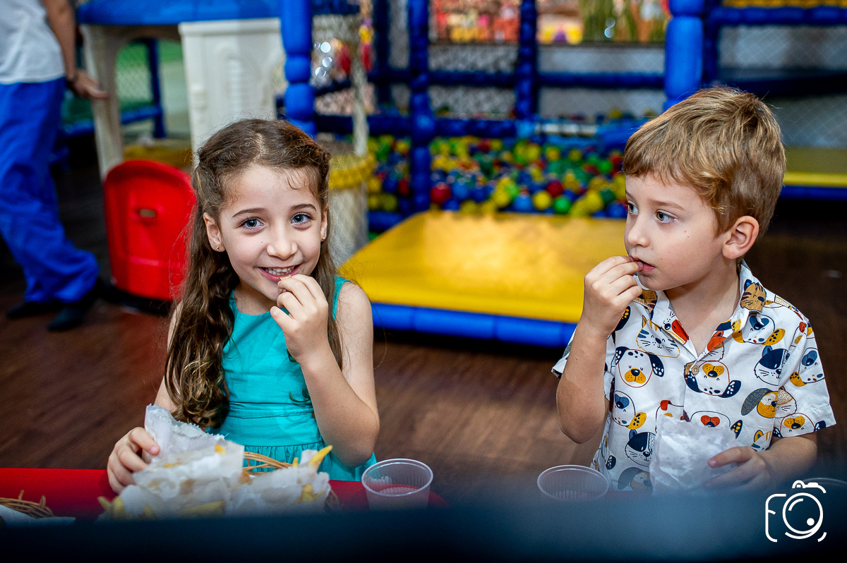 Pela primeira vez aqui no site um aniversário duplo e de dois irmãos, que comemoram com a família e seus amiguinhos.