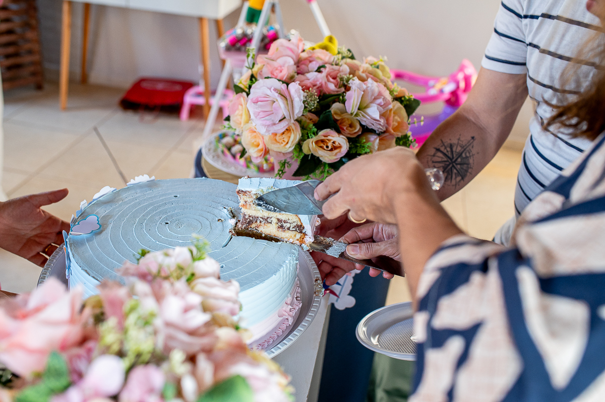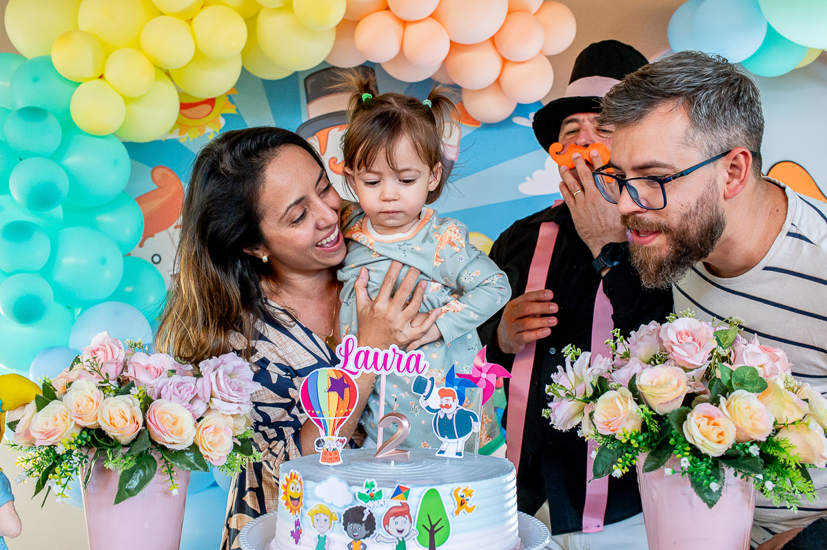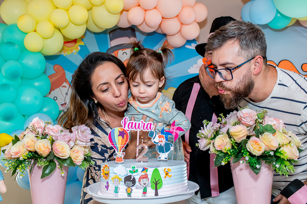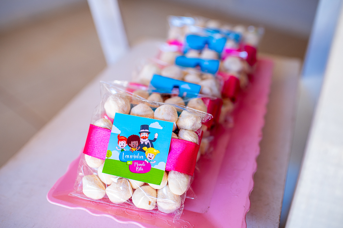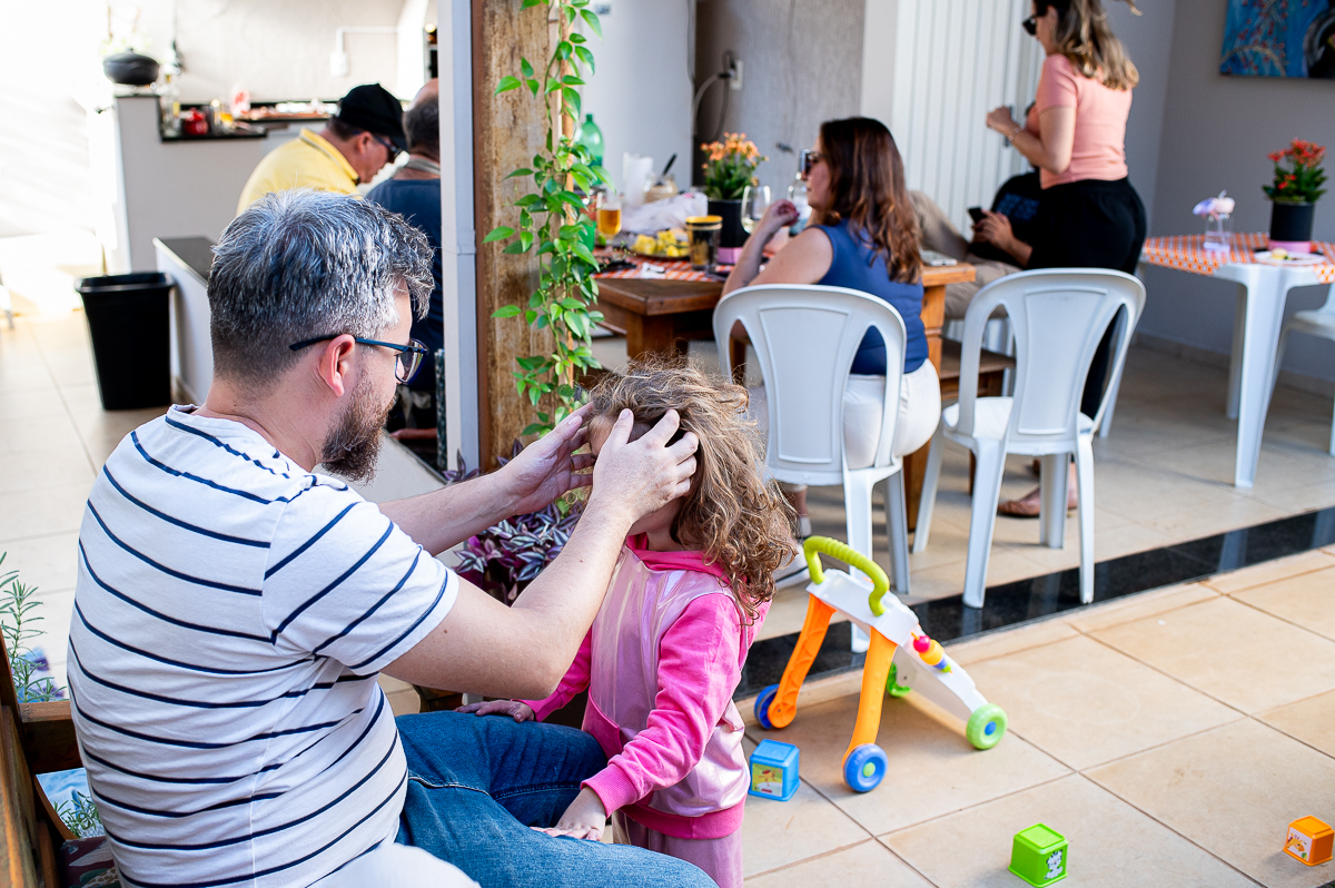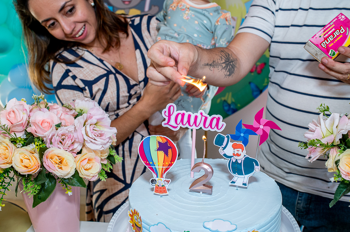 Festa em casa com toda família, muito afeto nos detalhes, tudo preparado pelos papais e avós com muito amor e carinho. E não poderia faltar o churrasquinho do vovô e muito pão de queijo (Laurinha ama) nesse dia tão lindo e especial.