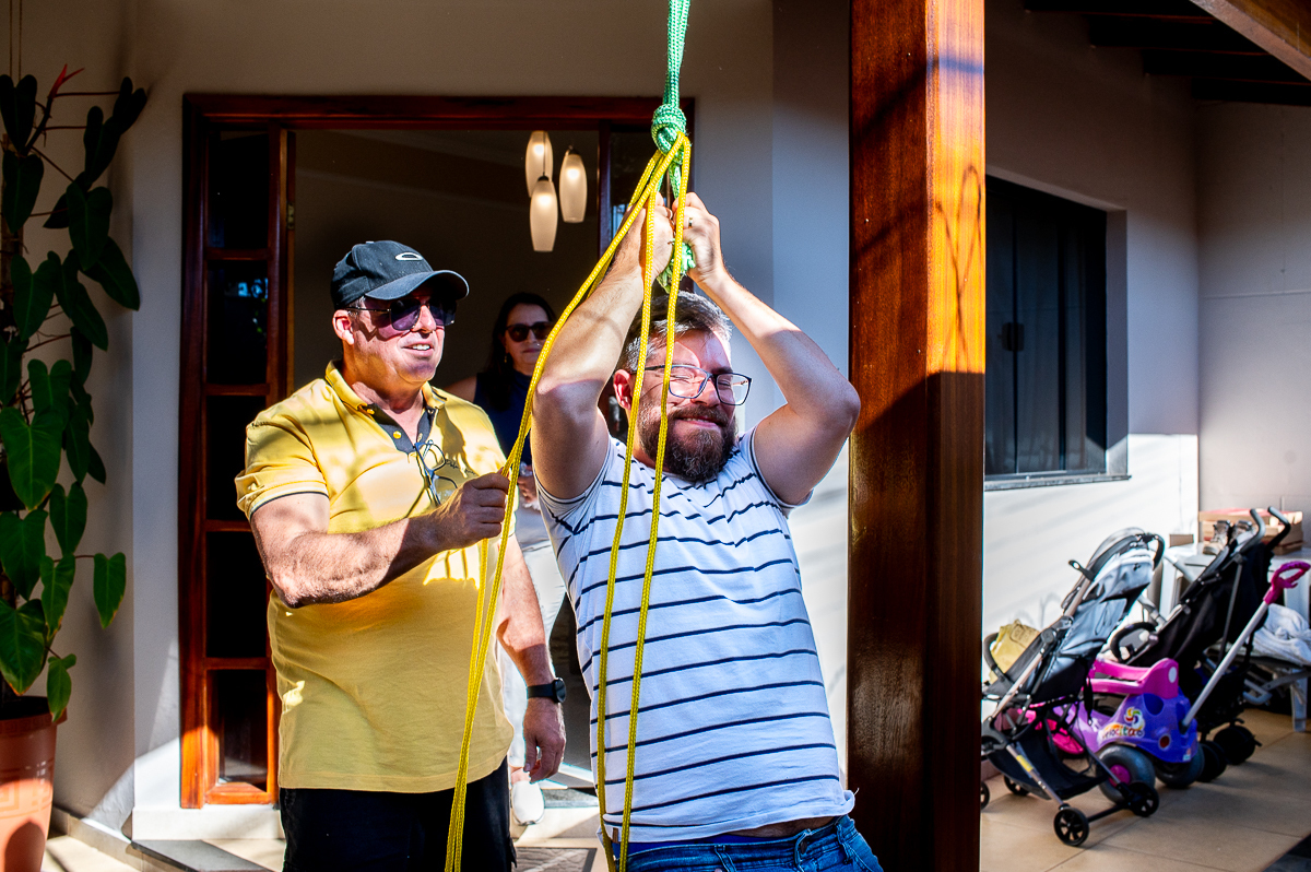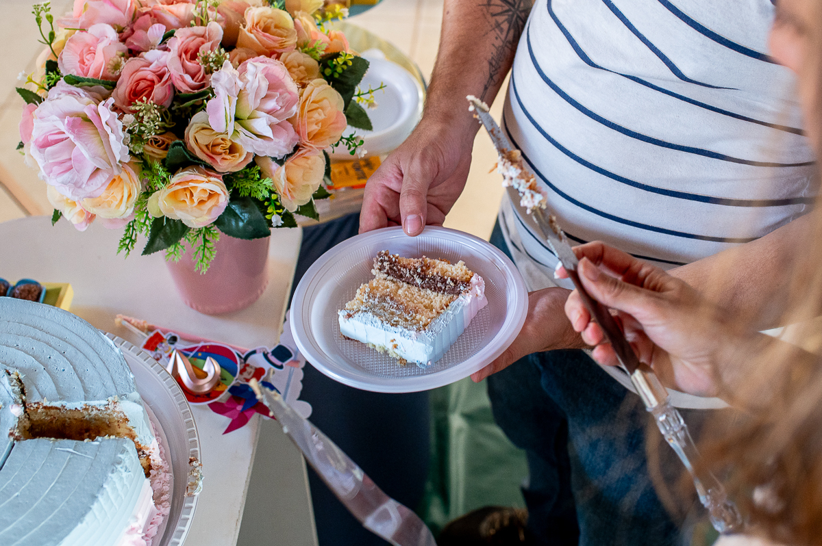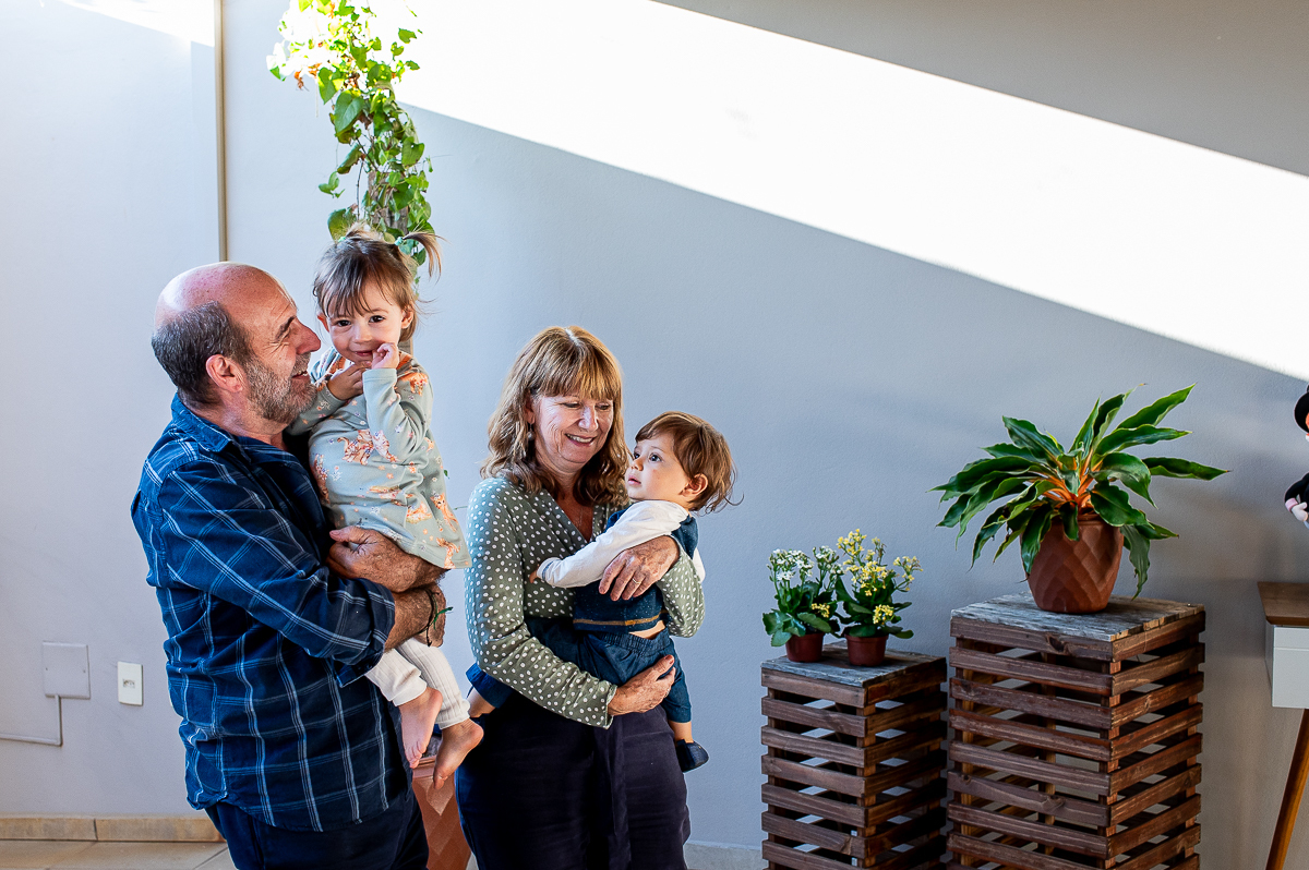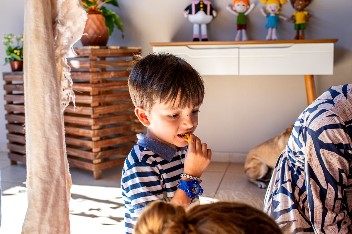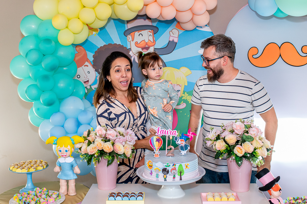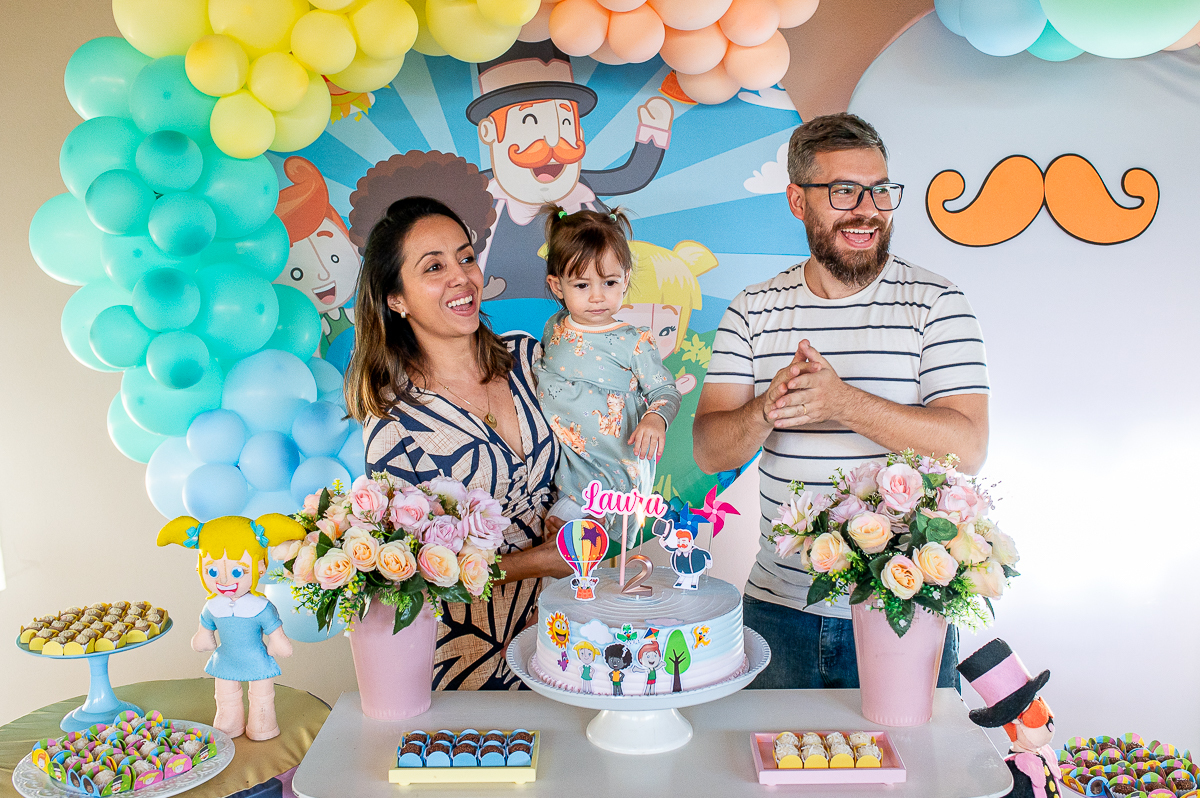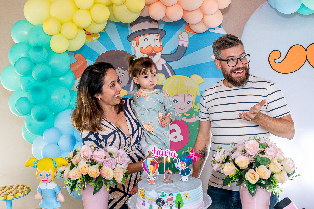 Festa em casa com toda família, muito afeto nos detalhes, tudo preparado pelos papais e avós com muito amor e carinho. E não poderia faltar o churrasquinho do vovô e muito pão de queijo (Laurinha ama) nesse dia tão lindo e especial.
