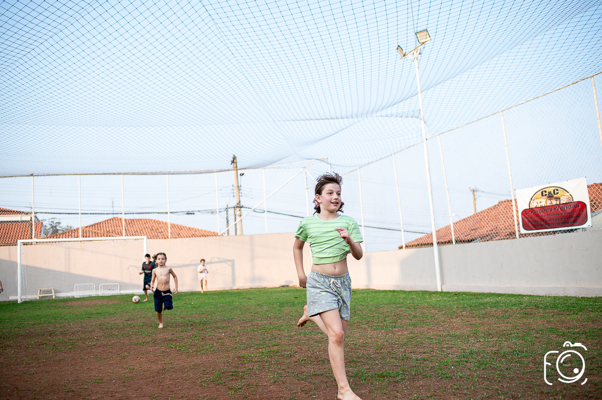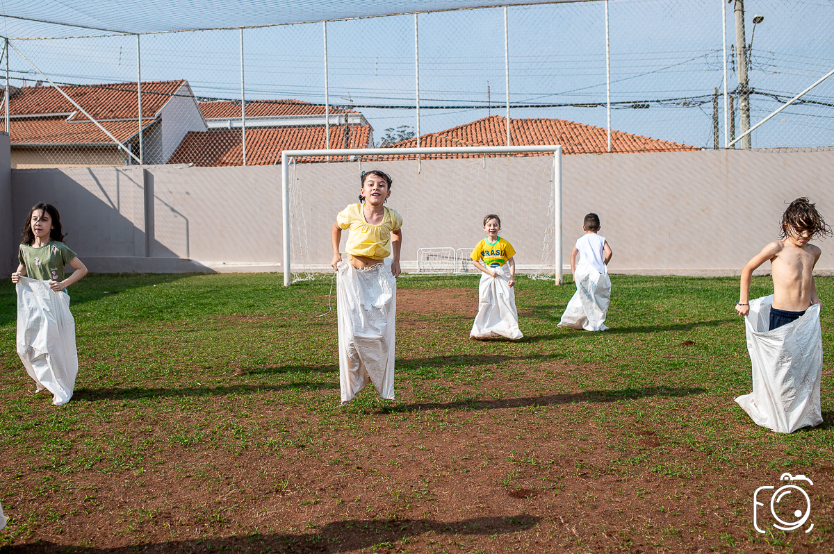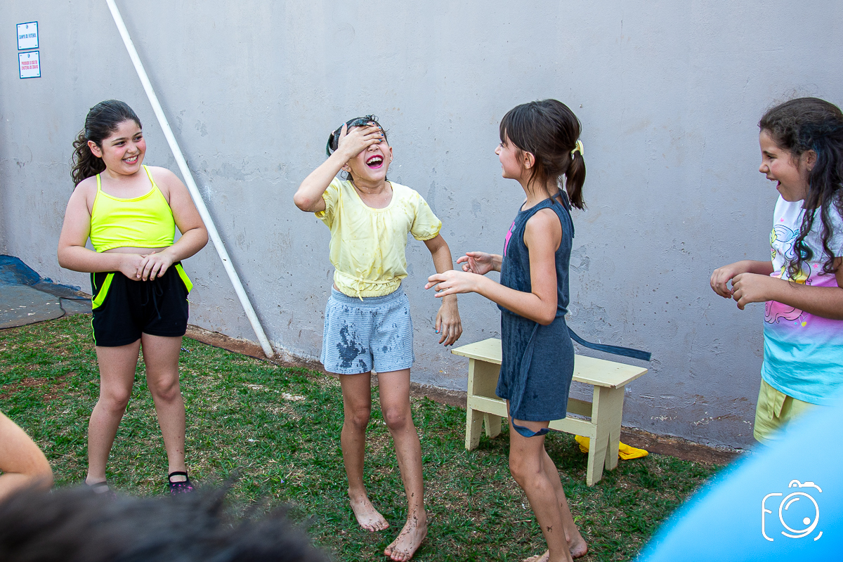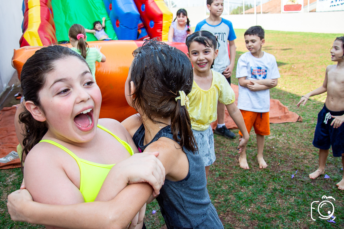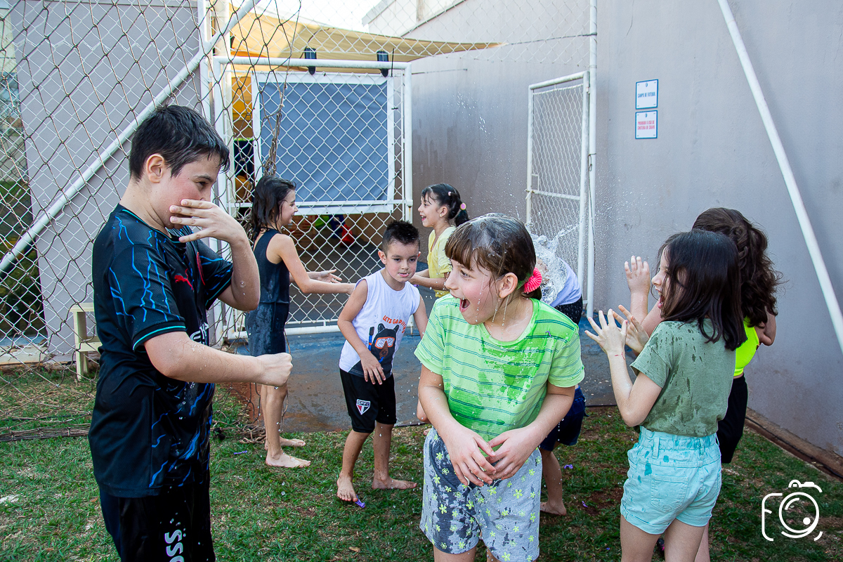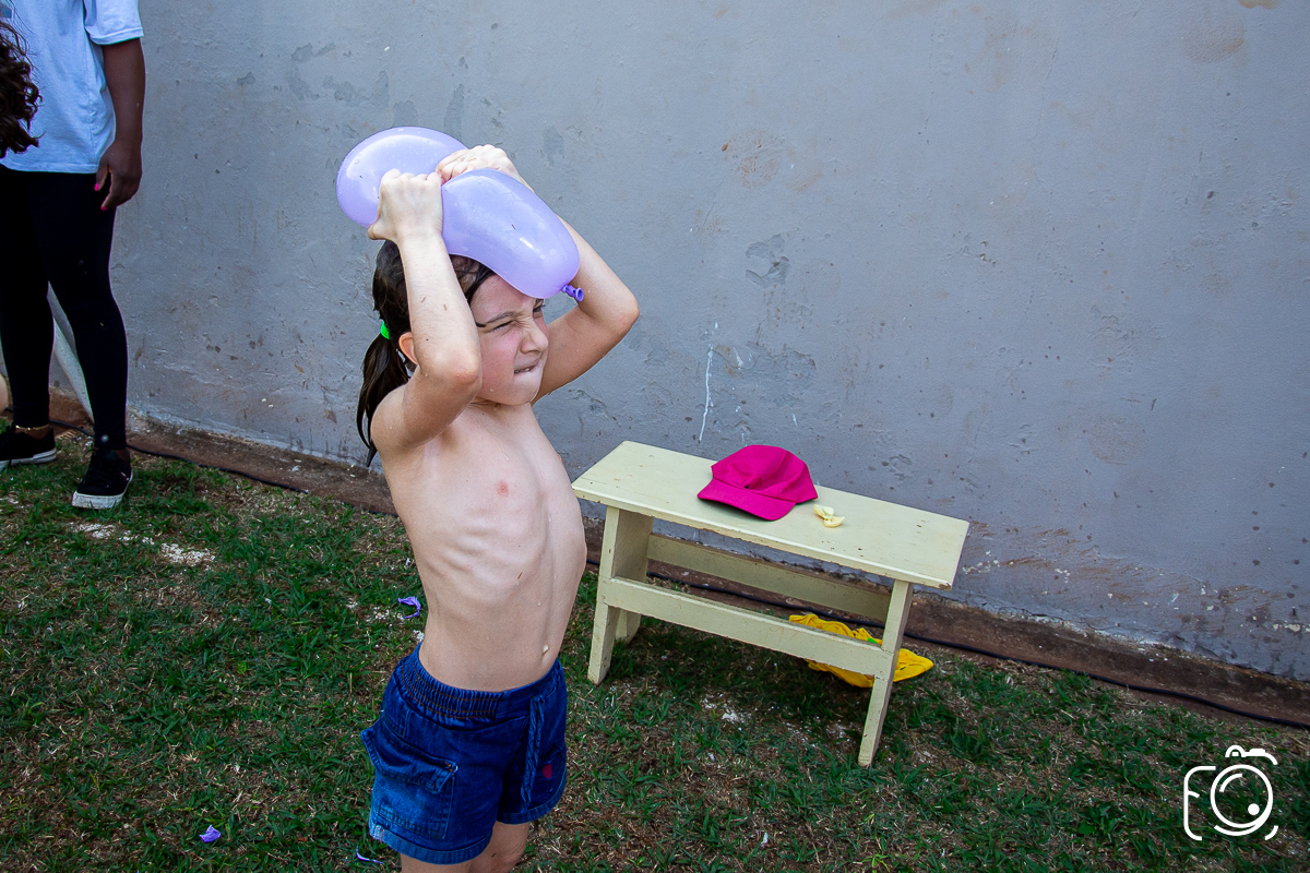 Que festa animadíssima! E aniversário do jeito que a criançada ama: calor, pé descalço, água, futebol, escorrega e muitas brincadeiras!