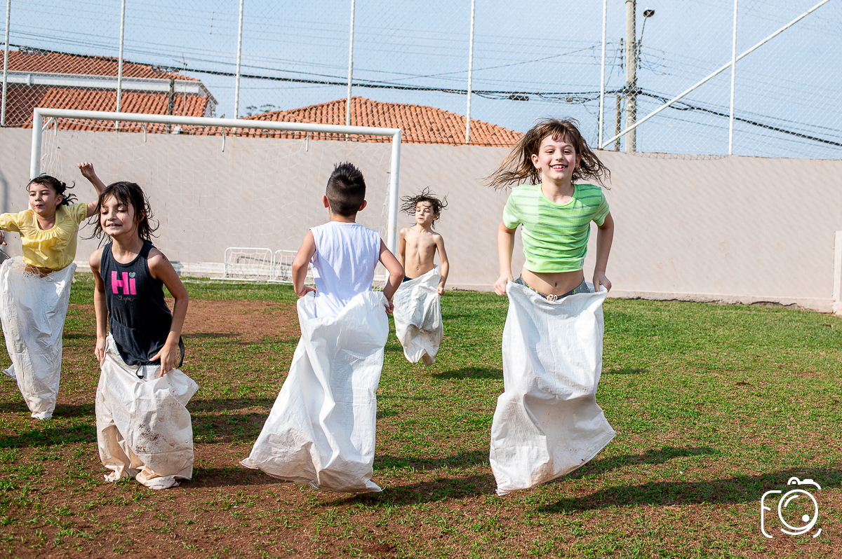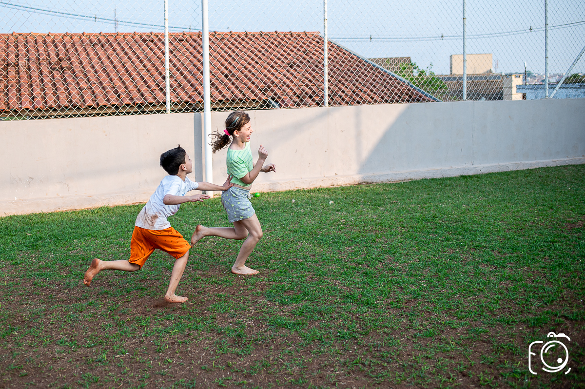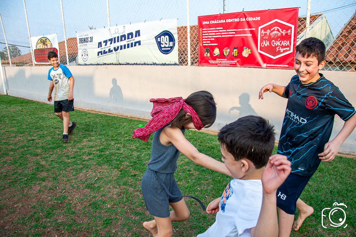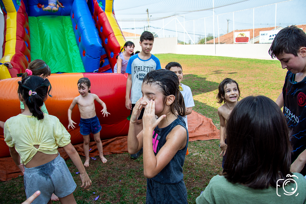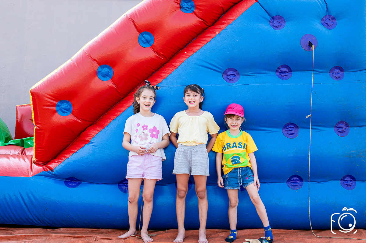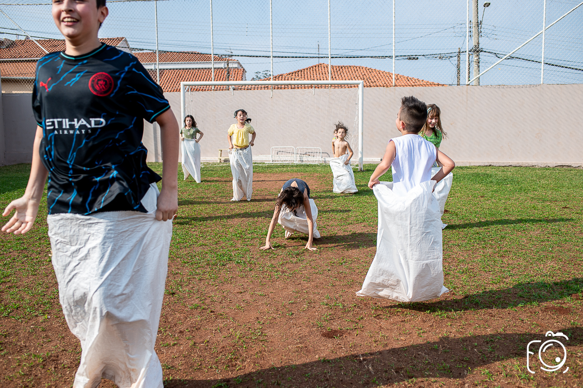Que festa animadíssima! E aniversário do jeito que a criançada ama: calor, pé descalço, água, futebol, escorrega e muitas brincadeiras!