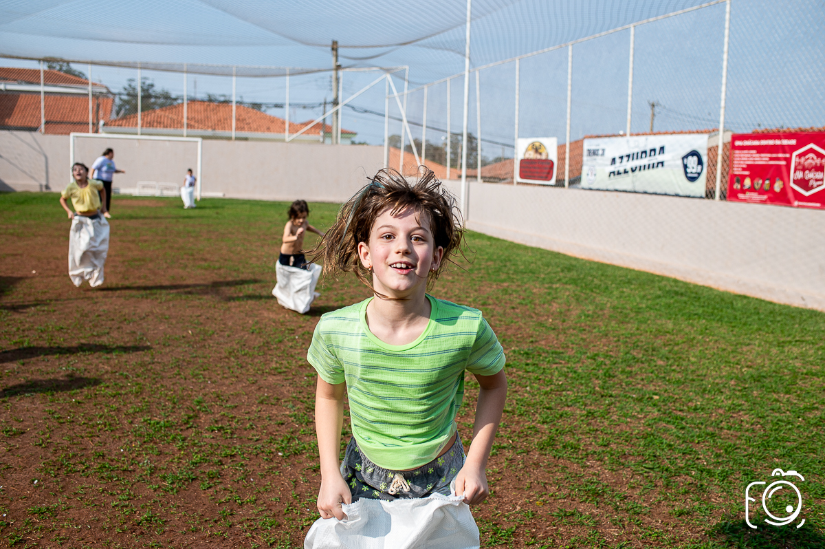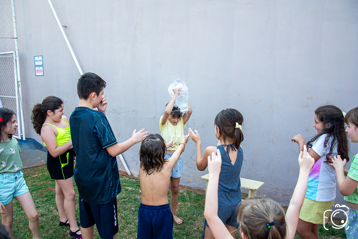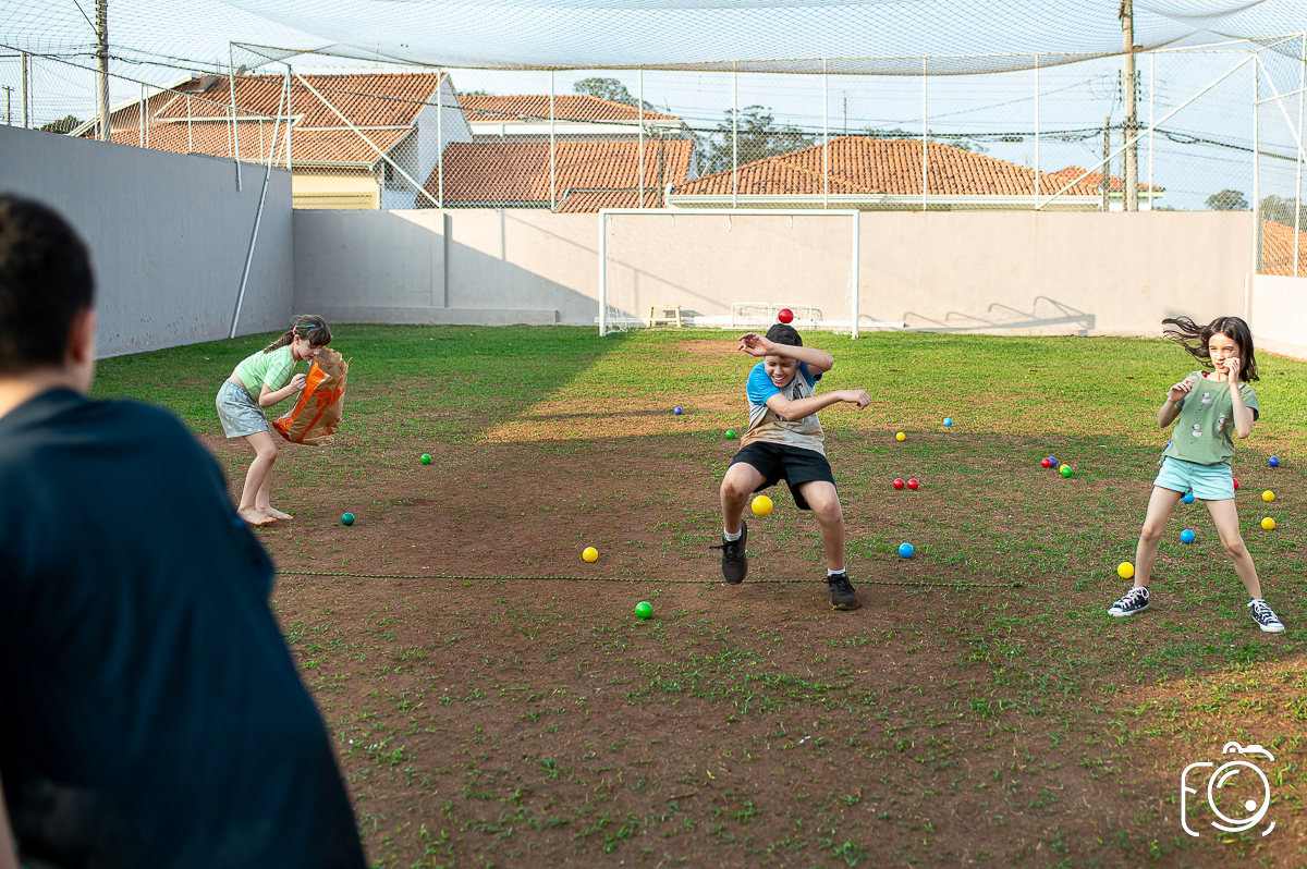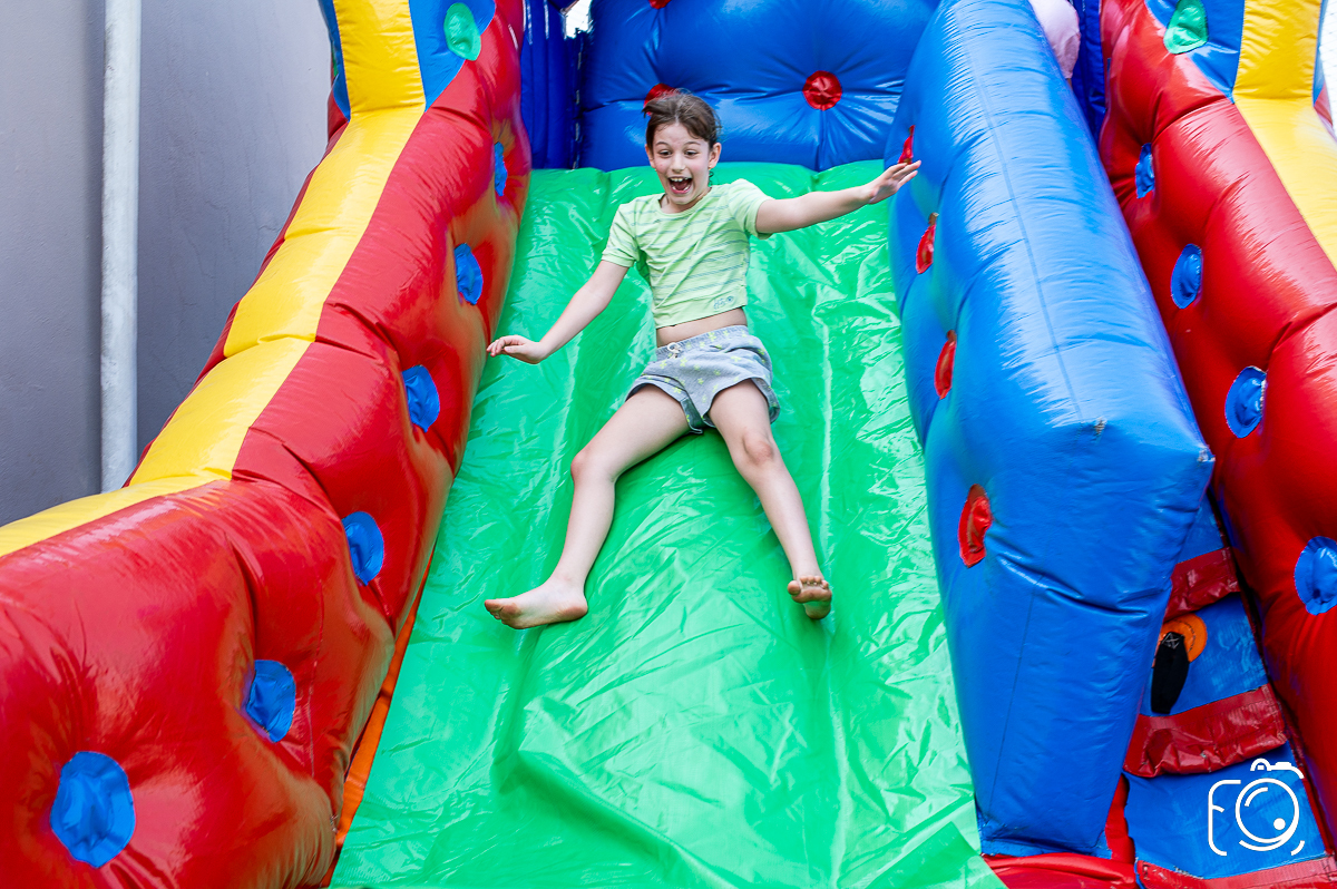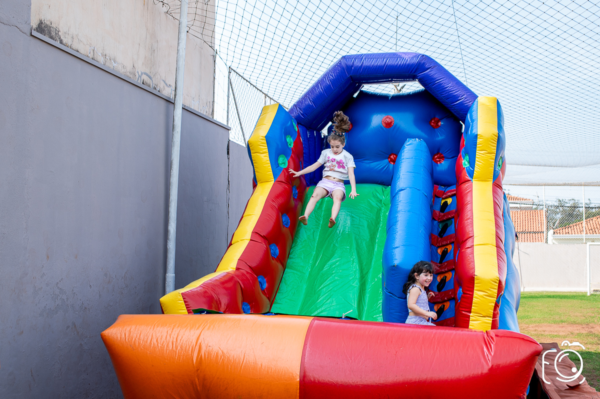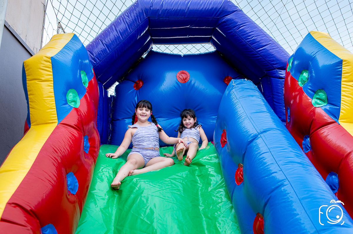 Que festa animadíssima! E aniversário do jeito que a criançada ama: calor, pé descalço, água, futebol, escorrega e muitas brincadeiras!