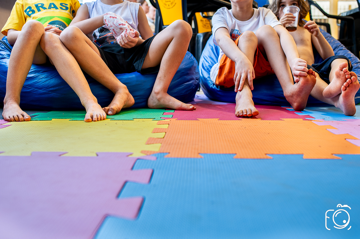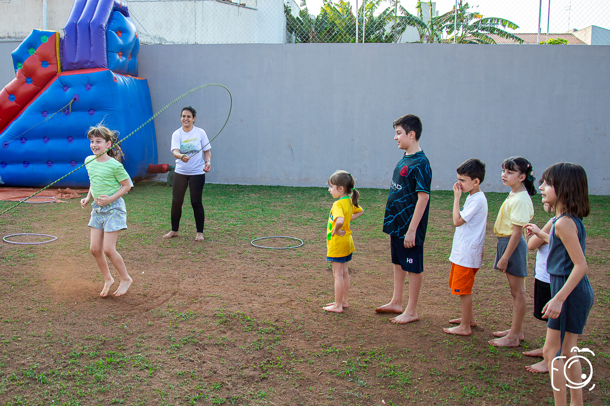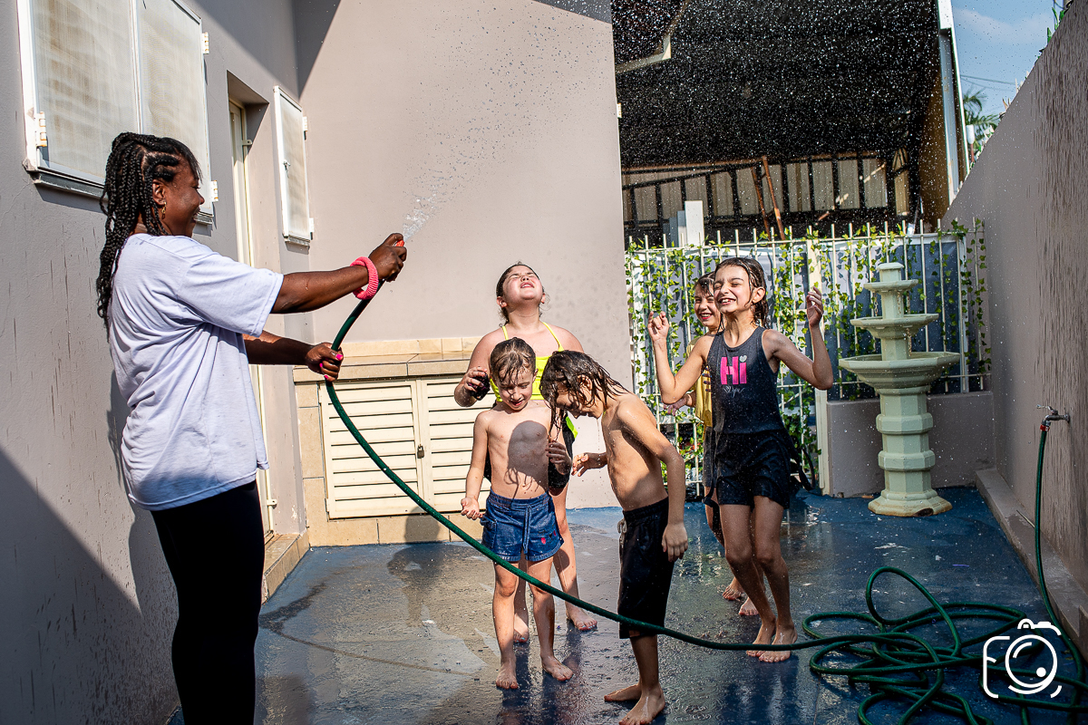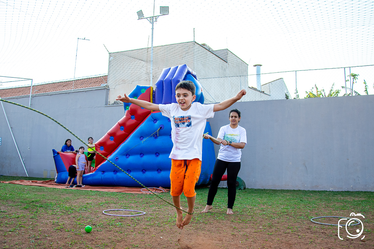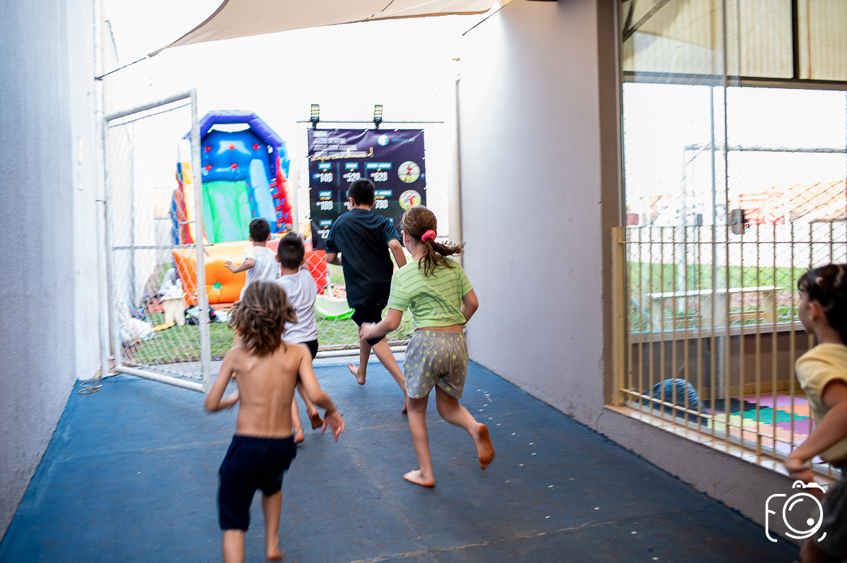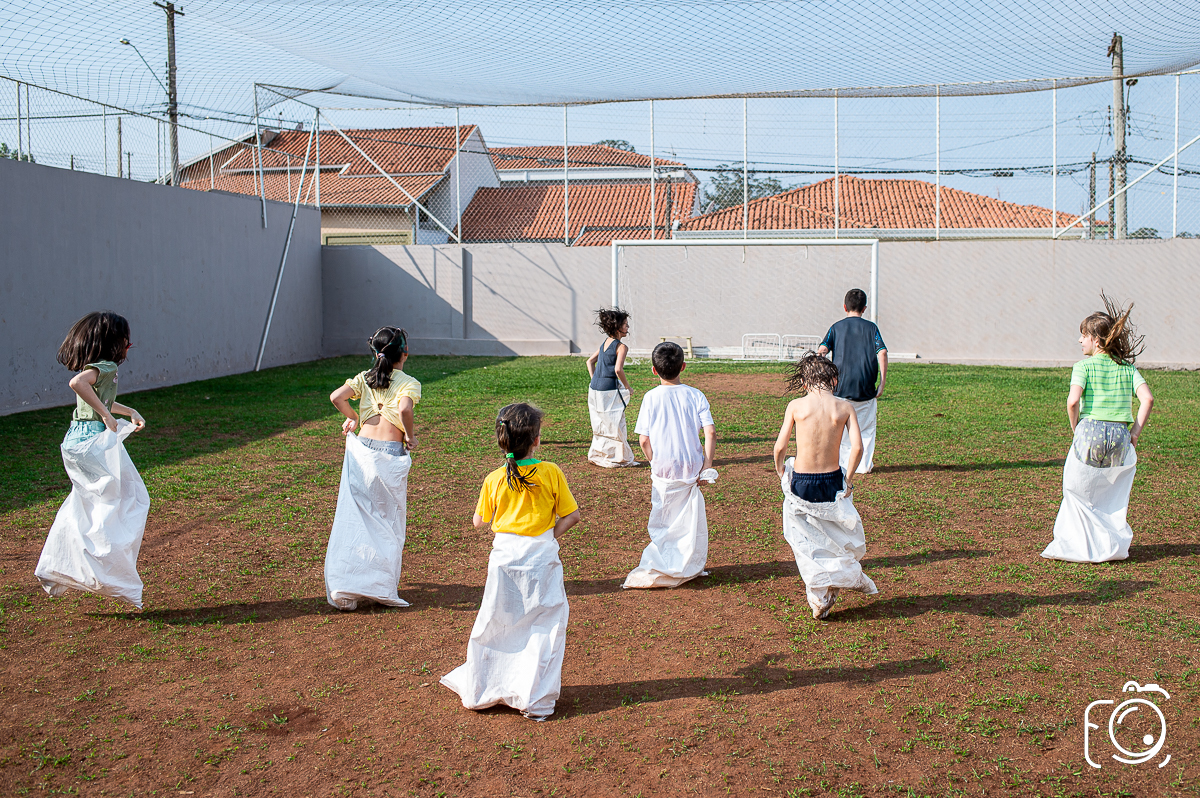 Que festa animadíssima! E aniversário do jeito que a criançada ama: calor, pé descalço, água, futebol, escorrega e muitas brincadeiras!