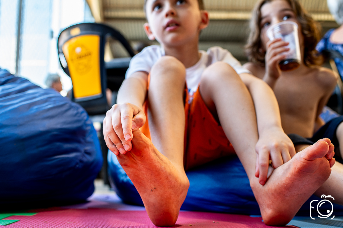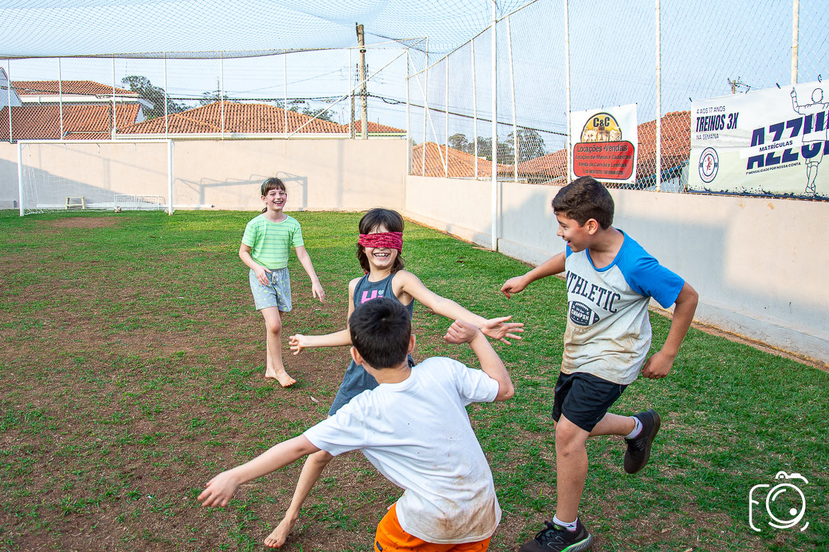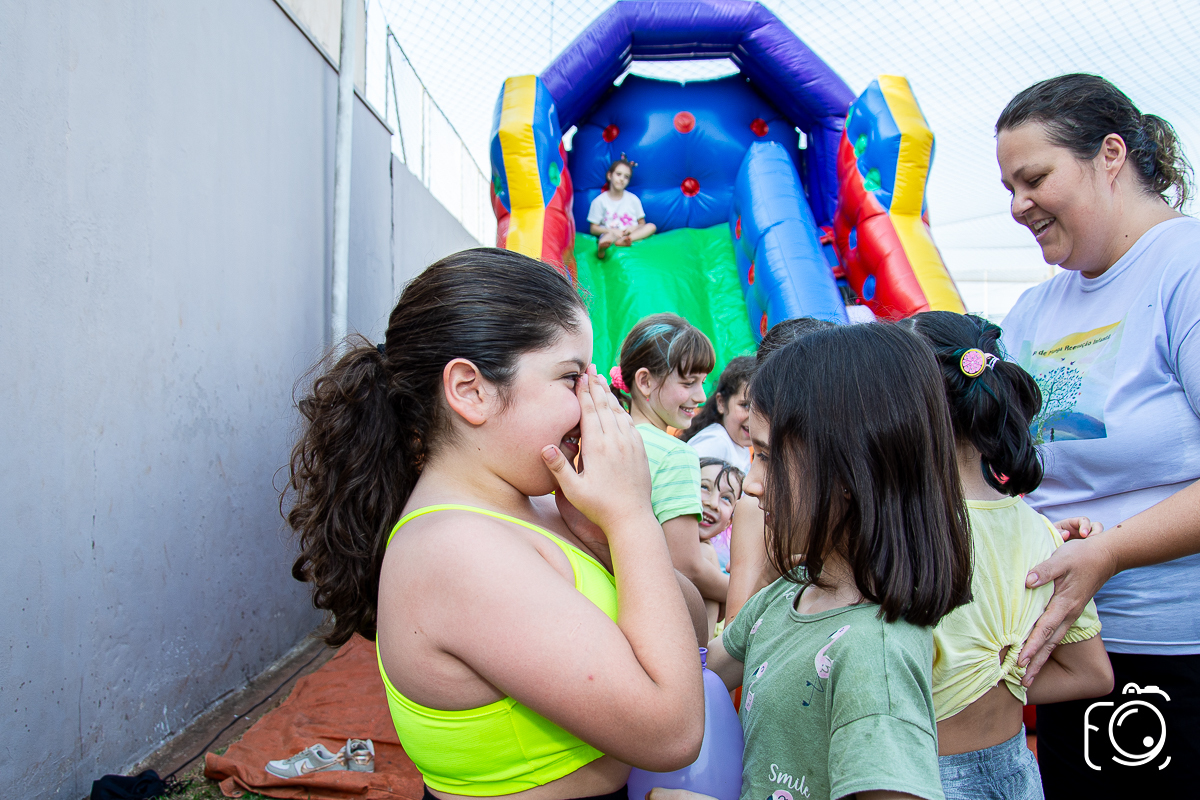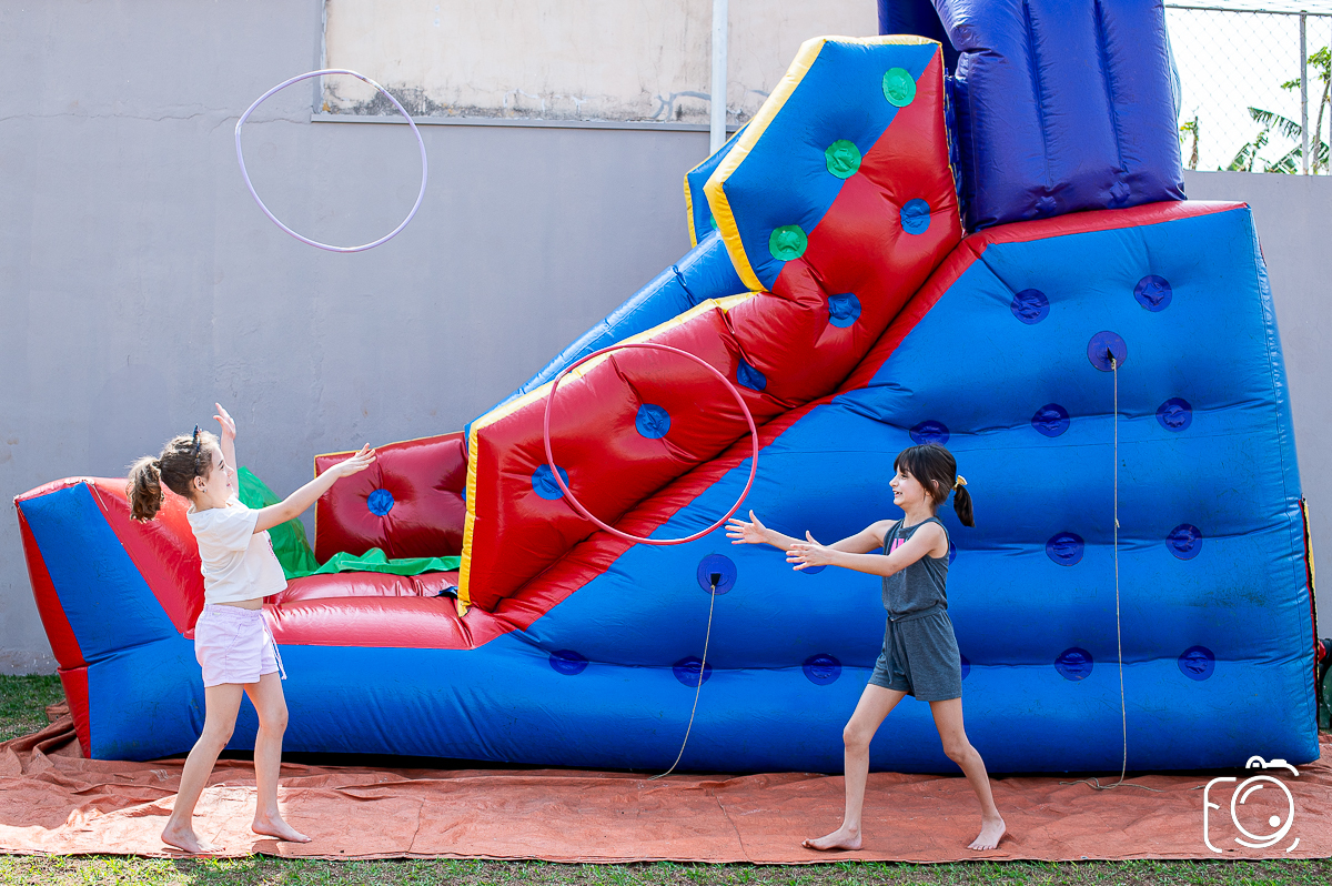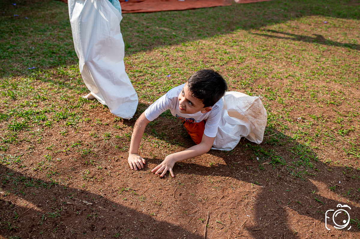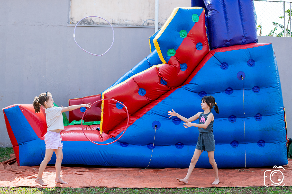 Que festa animadíssima! E aniversário do jeito que a criançada ama: calor, pé descalço, água, futebol, escorrega e muitas brincadeiras!