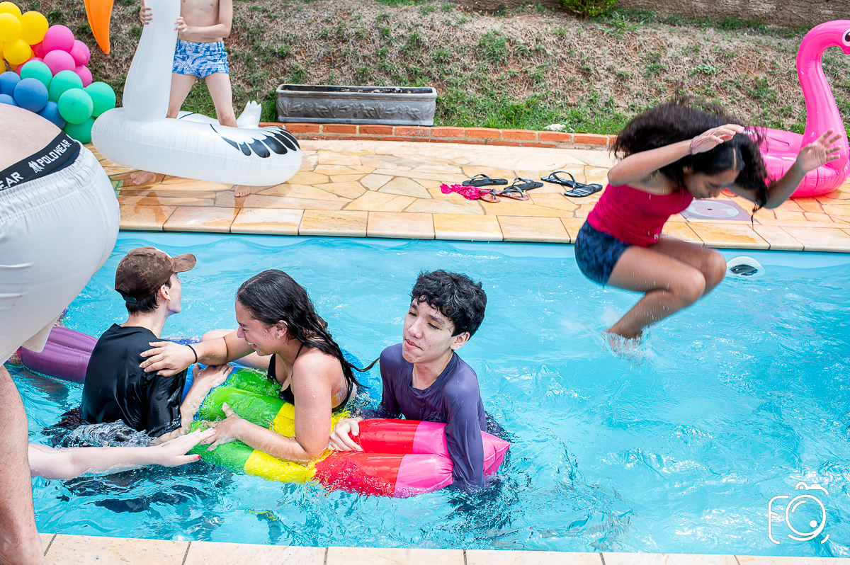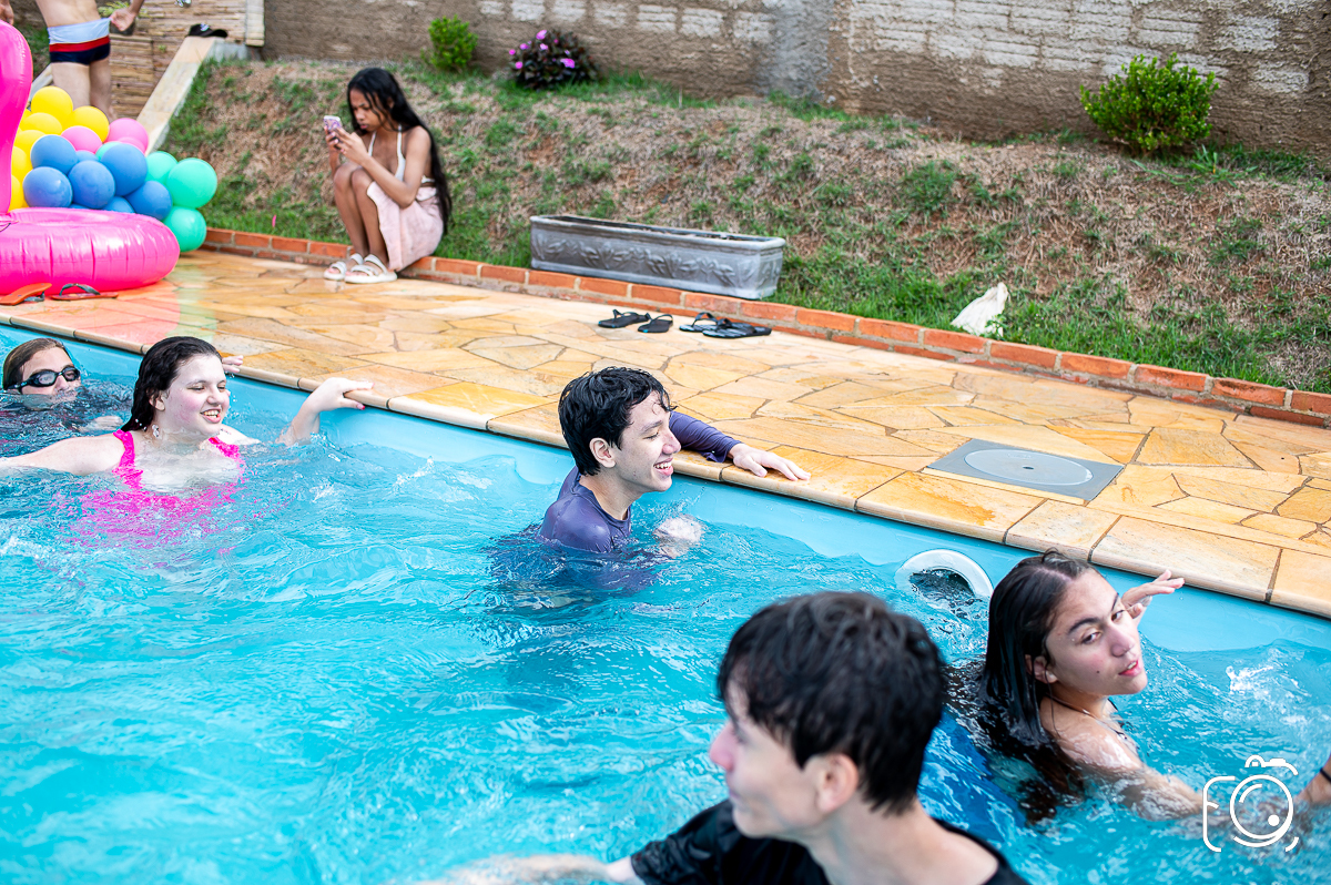 Um aniversário de 15 anos diferente por aqui! Festa na piscina e do jeito que amo fotografar!