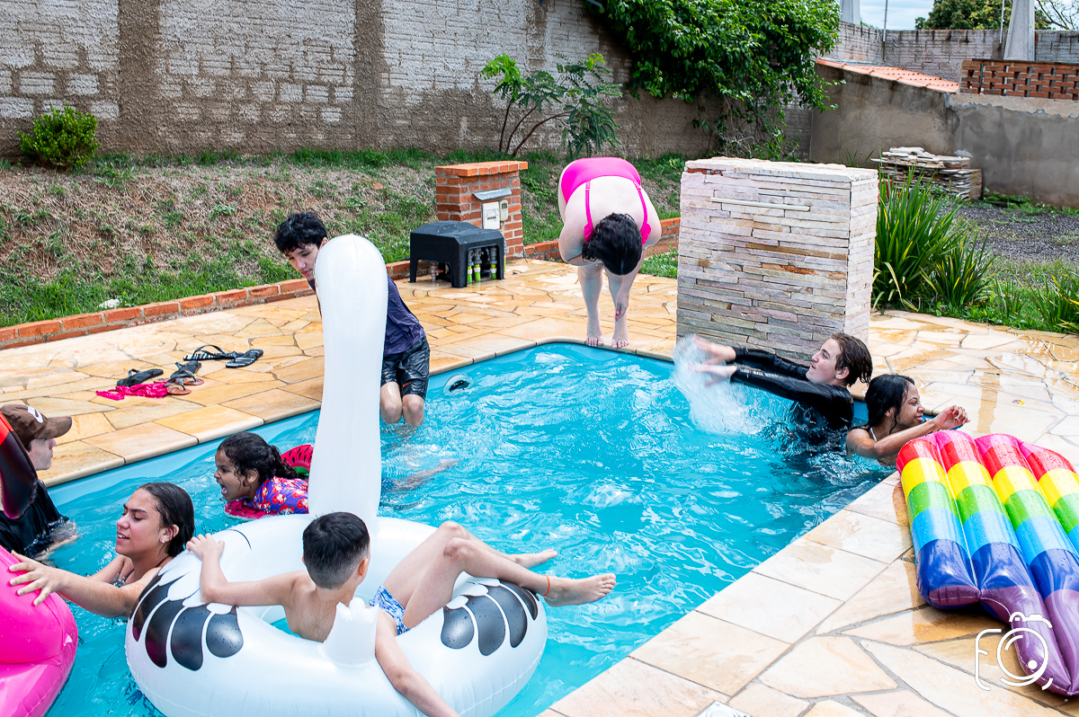 O que era para ser uma festinha na piscina com os amigos, se tornou o dia mais divertido de todos, com toda certeza escolha da pool party foi um milhão de vezes mais legal do que uma festa cheio de pompa, todos se divertiram muito e comeram sem parar kkkk.