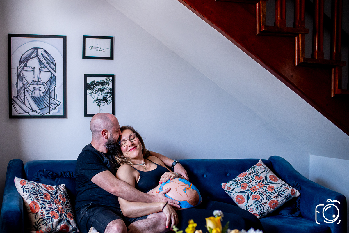 Foi um ensaio na casa deles, tranquilo, acolhedor e cheio de afeto. A família estava toda reunida e com muito amor à espera de mais um integrante (que inclusive nasceu uma semana depois do ensaio... rsrs).